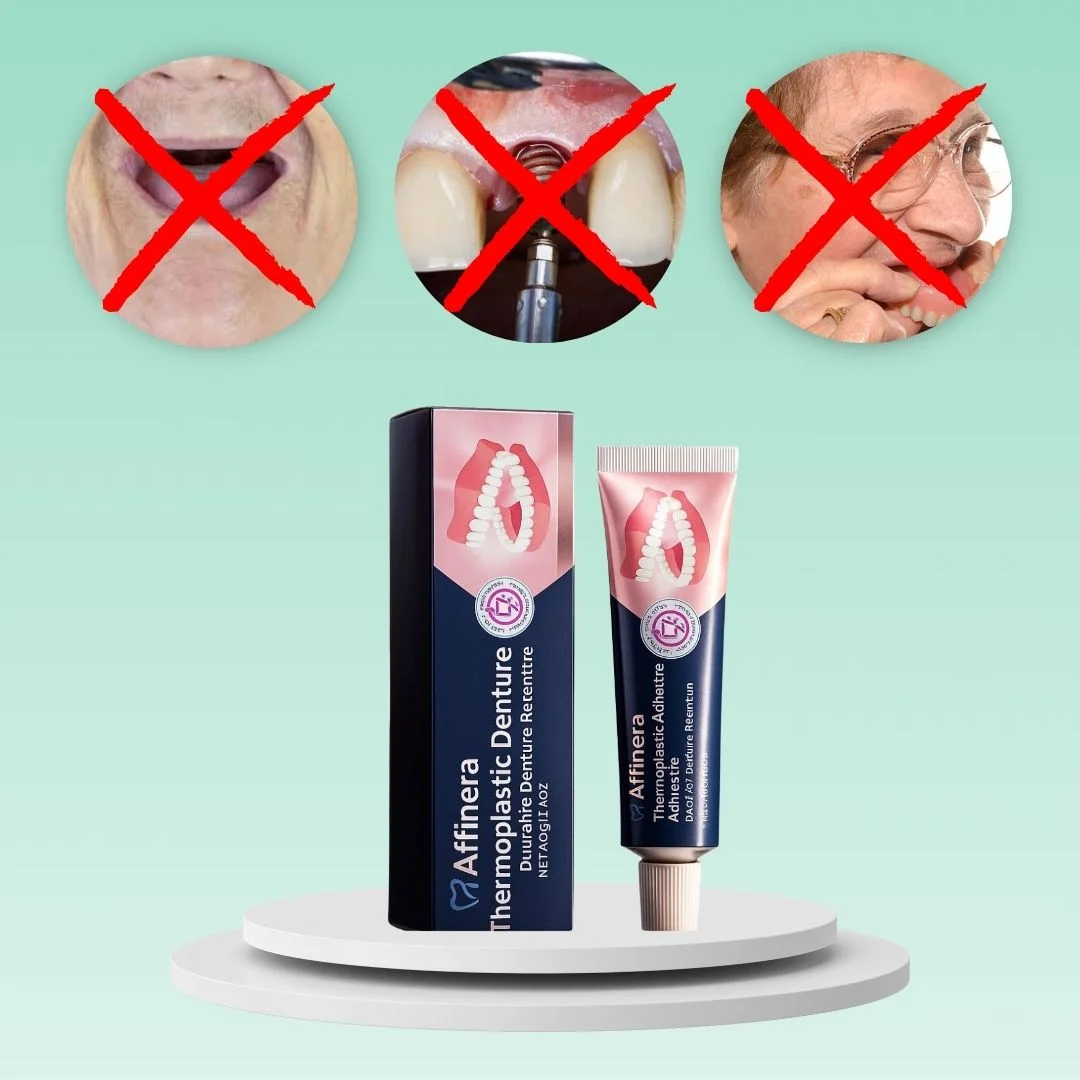 Affinera™ fills the tiny gaps that cause dentures to loosen—like a soft cushion your dentist would design, only cheaper and easier.