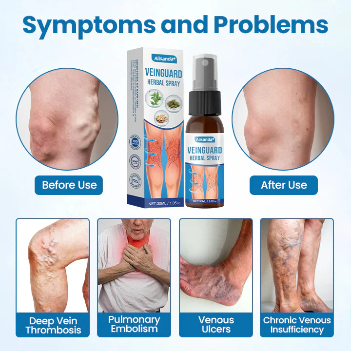 Alisanda VeinGuard Herbal Spray reduces swelling, smooths visible veins, boosts circulation, and supports vein health with fast acting deep penetrating micro mist care.