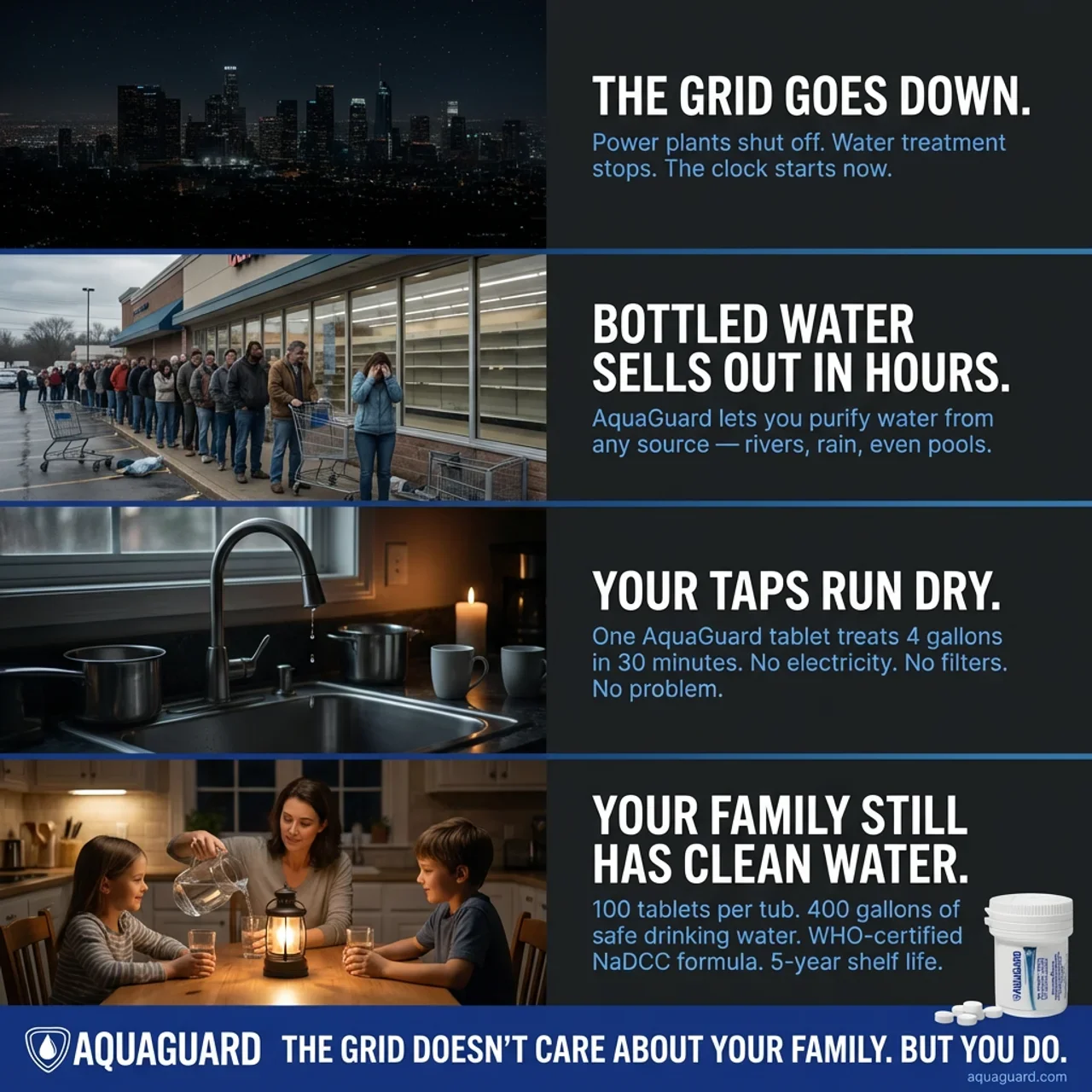 Most households have food stored for emergencies. Almost none have a reliable plan for water. When the power goes out and the taps run dry, that gap becomes a crisis fast. AquaGuard Water Purification Tablets exist for exactly that moment — when everything else fails and your family needs clean water now.