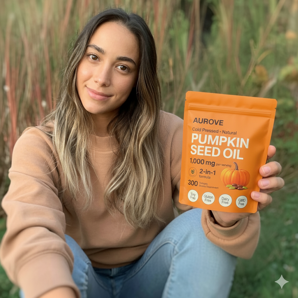 Pumpkin seed oil softgels support hair strength, urinary health, and hormonal balance with a nutrient-rich daily formula