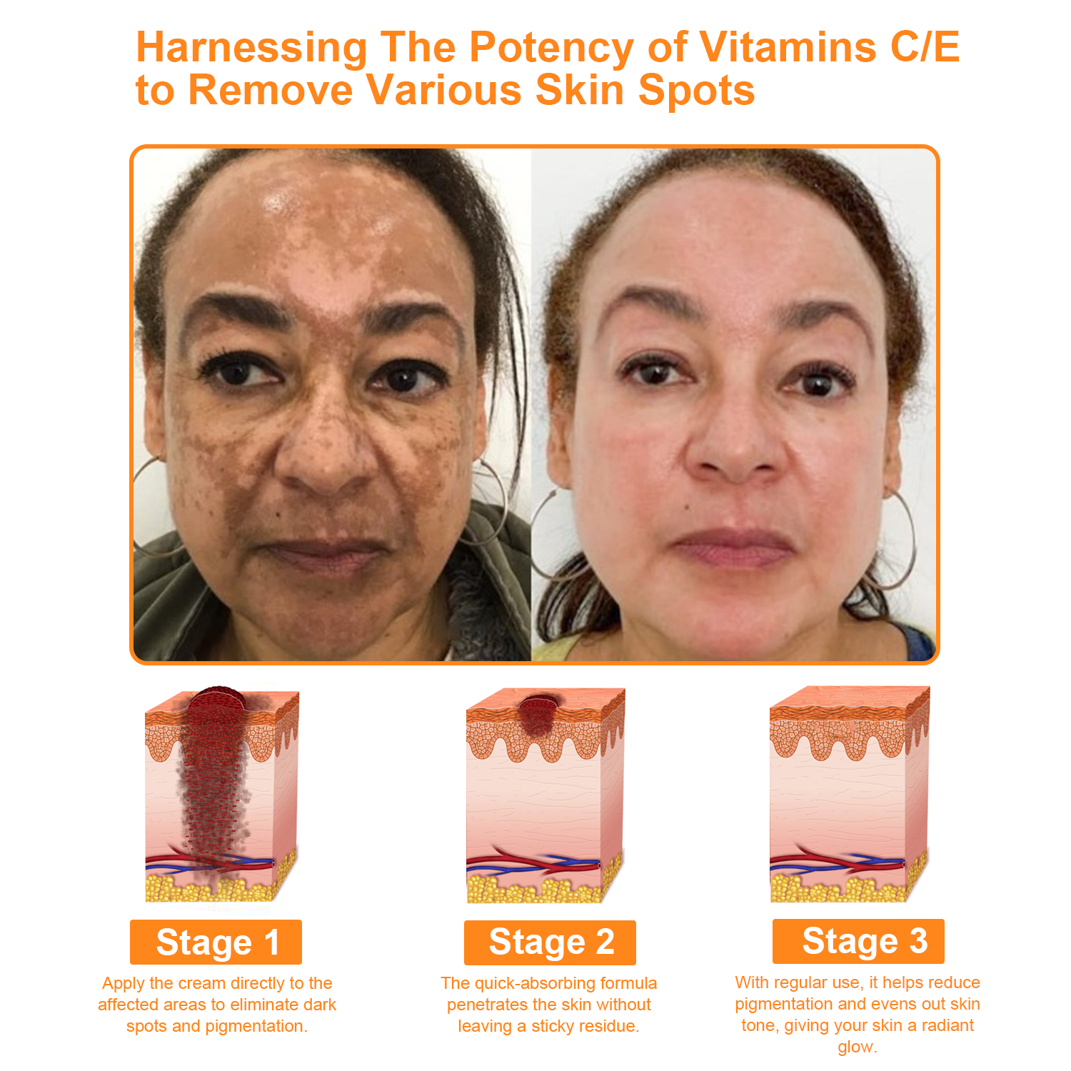 Infused with Vitamins C and E, our formula is your secret to achieving the radiant, glowing skin you’ve always desired. BBOJI™ 7-Day Quick Skin Repair Cream features powerful ingredients that penetrate deeply to reduce dark spots, pregnancy marks, sun spots, hyperpigmentation, scars, discoloration, melasma, and uneven skin tones, giving you a more even complexion. Our cream effectively targets both dark, defined spots and smaller, scattered imperfections across the face. Its quick-absorbing texture is non-sticky, leaving your skin looking translucent and revitalized.