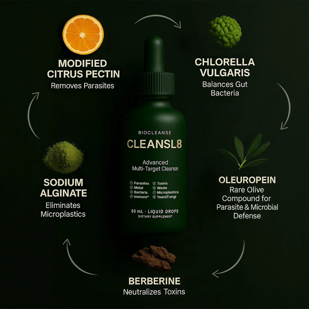 Most cleanses only scratch the surface. A parasite cleanse ignores metals. A metal flush ignores plastics. Fungal cleanses leave toxins untouched. CLEANSL8 was built to end this cycle. One formula, one dropper, total defense. It hunts down every invader at once and clears the burden suffocating your body. Nothing slips through the cracks.