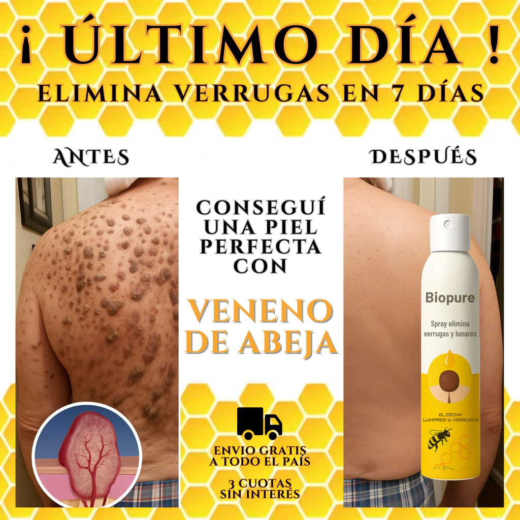 Bee venom: a powerful natural remedy that acts specifically against warts and skin tags, accelerating their disappearance. It contains several highly effective bioactive compounds: