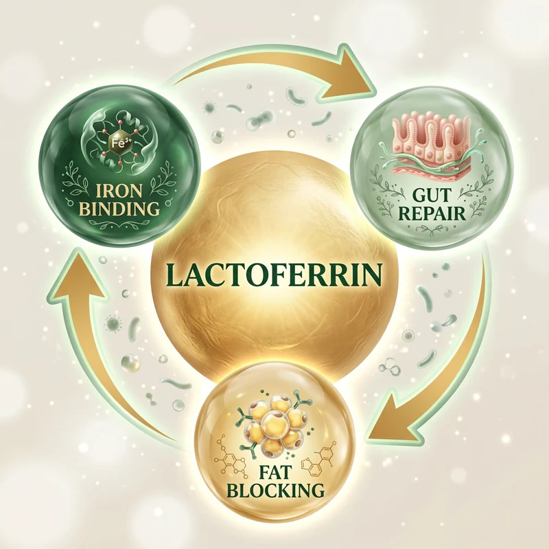 Lactoferrin 300mg — a bioidentical iron-binding protein that supports healthy iron metabolism, helps reduce the oxidative stress associated with hormonal change, and supports the gut lining integrity that menopause gradually breaks down. Your body produces this protein naturally — MENO SHREED restores what time and hormonal change have reduced.