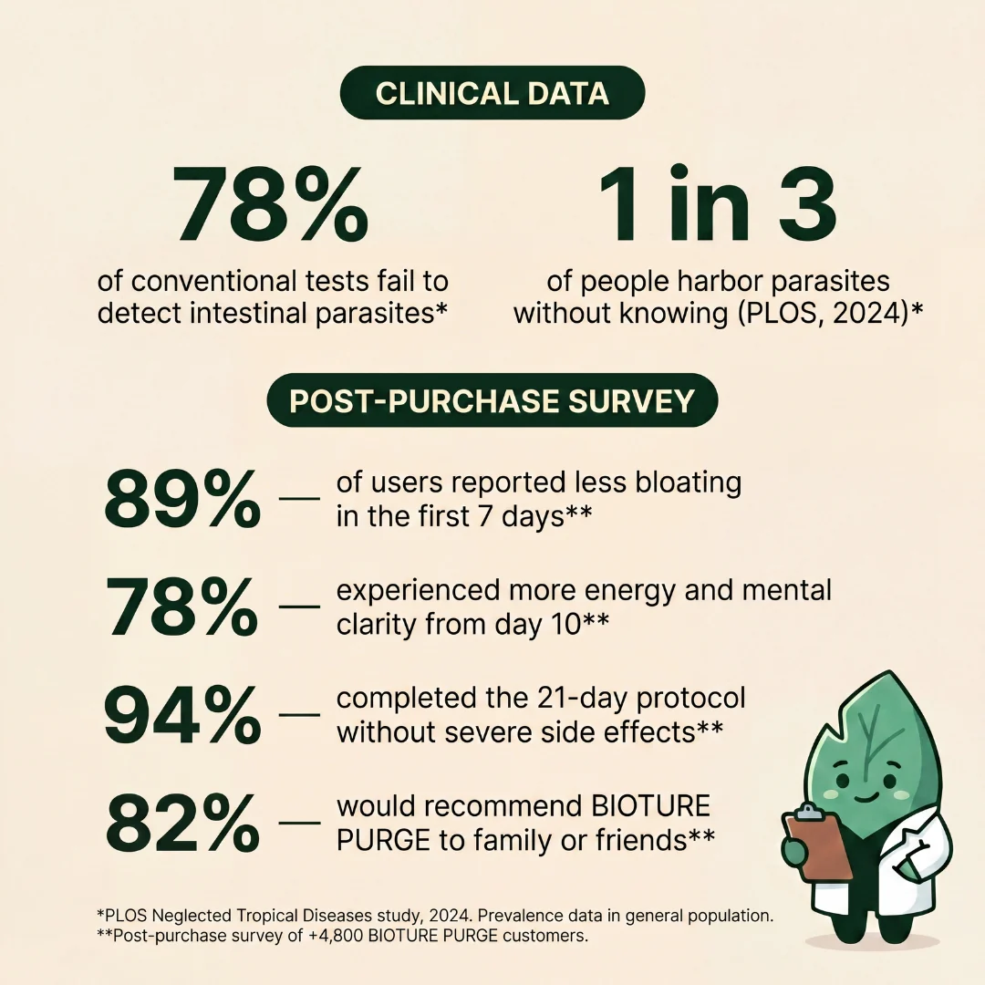 Days 1–7 — the formula begins activating and supporting the gut environment. Many users start to notice reduced heaviness and improved digestive comfort within the first week. Days 8–14 — energy starts to return, brain fog begins to lift, and the stomach feels progressively calmer and lighter after meals. Days 15–21 — deeper internal balance sets in. Digestion feels smoother and more regular. The body begins to feel restored and more in control. Day 21 and beyond — with continued use, gut comfort stabilises, energy remains consistent, and the benefits of a cleaner, more balanced internal environment continue to build.