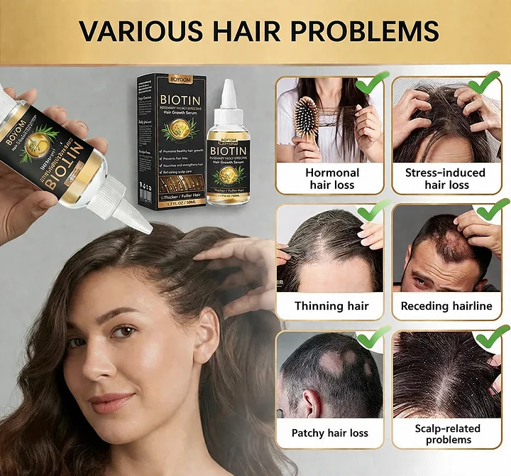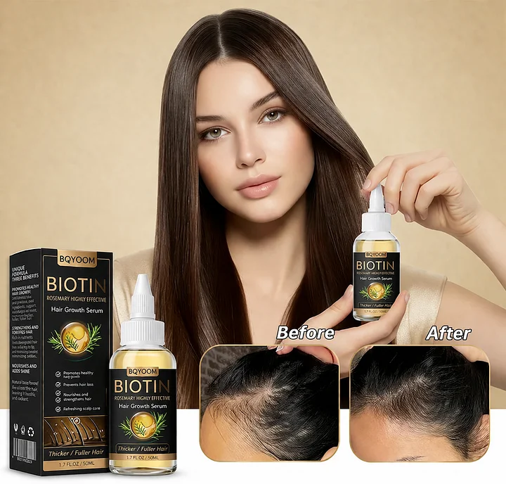 Watching your hair thin, your hairline shift, or your parting widen is one of those changes that quietly chips away at your confidence every single day. You’ve probably tried products that promised results and delivered nothing. The truth is, most of them never reached the place where hair loss actually begins — the scalp, and the follicles beneath it. BQYOOM® Biotin & Rosemary Hair Growth Serum is a precision-formulated, plant-based serum designed to work directly at the root, supporting the conditions your follicles need to produce thicker, stronger, more resilient hair.