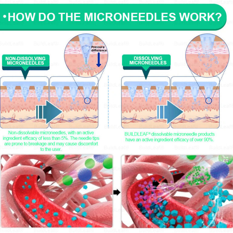Each needle is 0.27mm long, just 1/7th the thickness of a hair, and is made from dissolvable medication. These micro-needles are precision-engineered using cutting-edge manufacturing techniques to ensure a seamless, pain-free experience while effectively delivering the active ingredients directly into the skin.