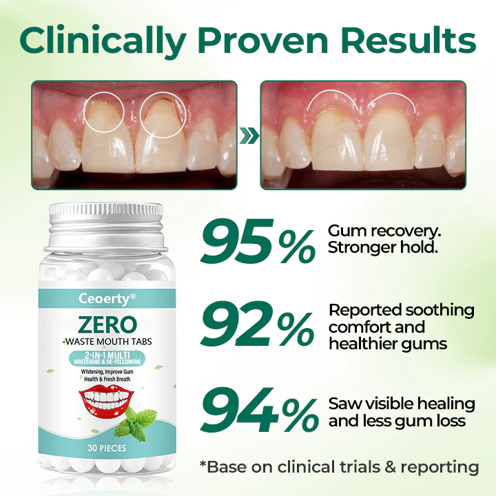 Ceoerty® Zero-Waste Mouth Tabs replace toothpaste and mouthwash with a single tablet for fresher breath and healthier gums without plastic waste or mess