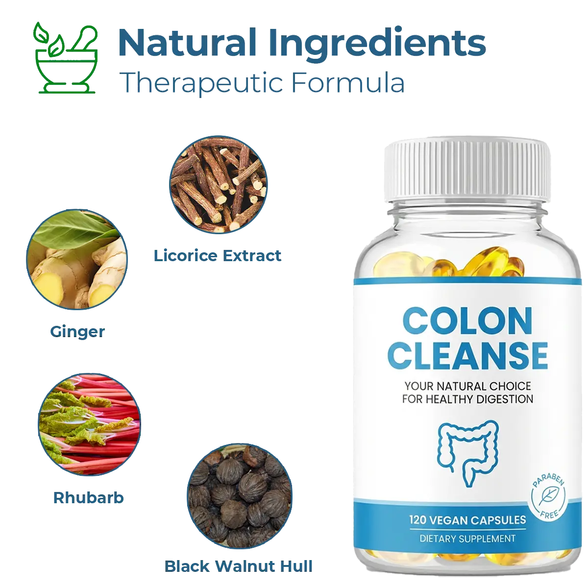 Herbal Blend — a balanced combination of complementary botanicals formulated to work in harmony for comprehensive colon support.