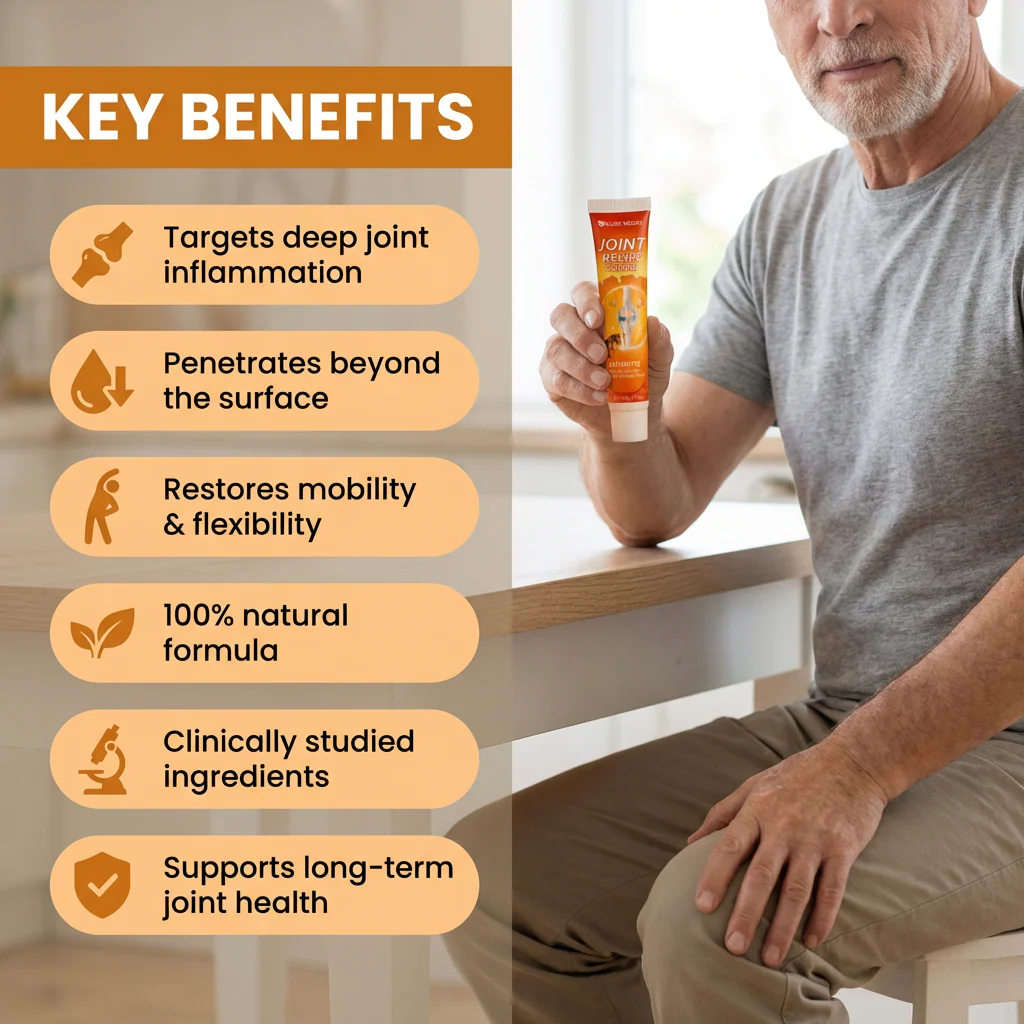 By reducing stiffness and supporting cartilage function, Joint Relief Cream helps restore your natural range of motion. Many users report easier mornings within the first few weeks.