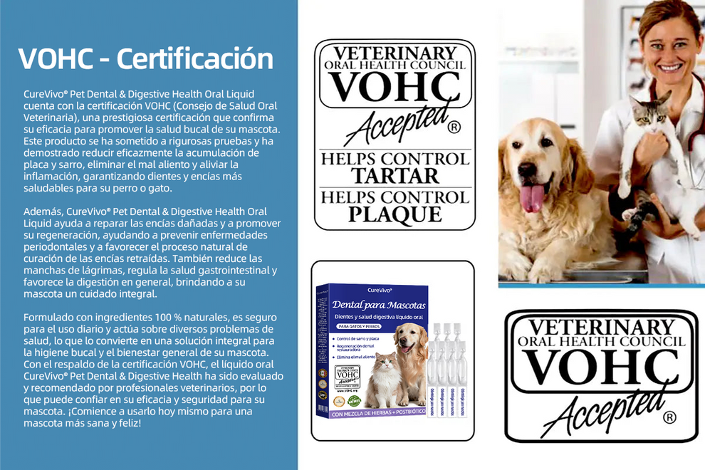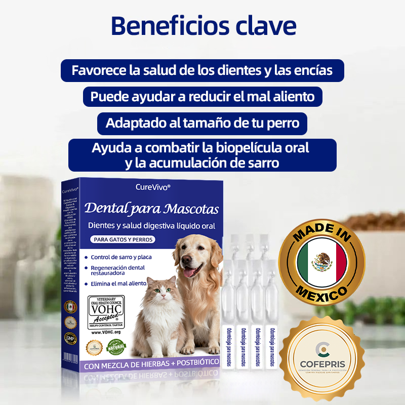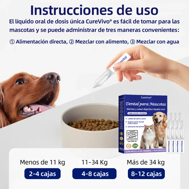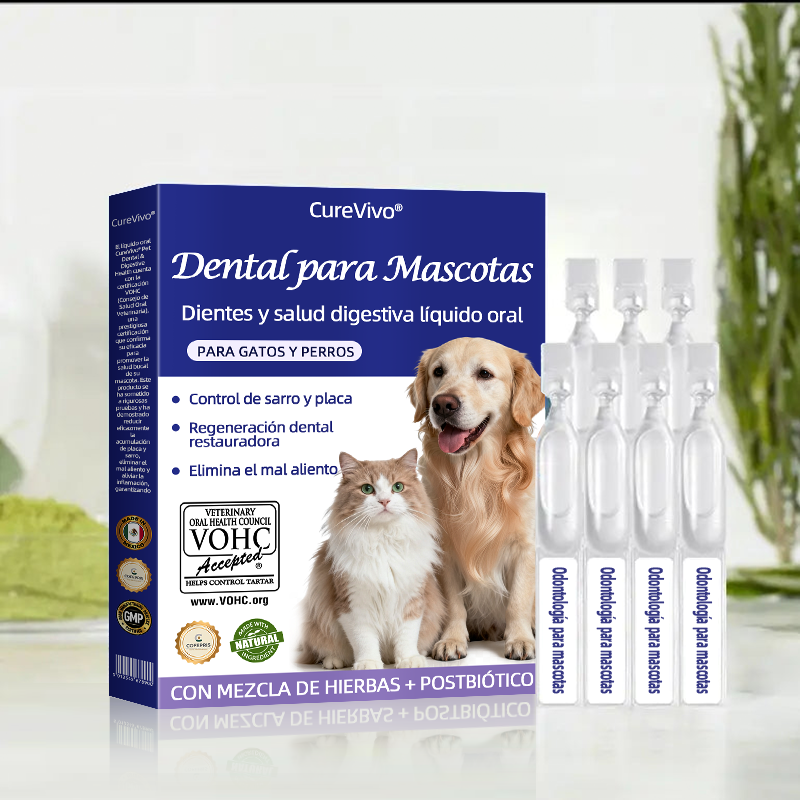 Give your pet optimal oral health with CureVivo® Pet Dental & Digestive Health Oral Liquid. Formulated with natural ingredients and probiotics, this powder helps maintain healthy teeth and gums, while freshening breath and preventing tartar buildup. A must-have for all pet owners!