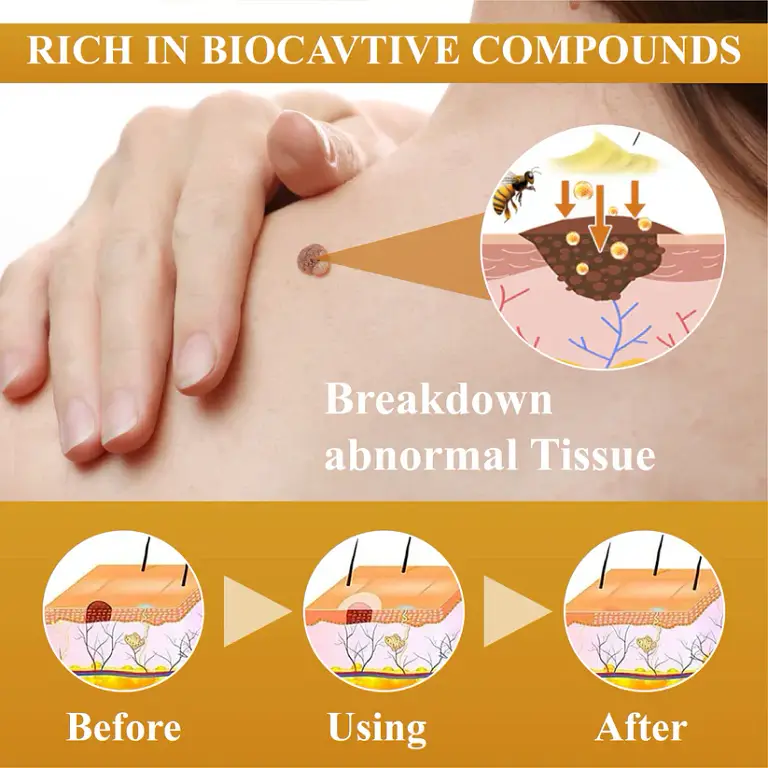 Cvreoz® Condense Mellifera Venom Skin Repairing Cream leverages the powerful properties of Mellifera Venom to effectively address moles, warts, and other skin issues. This advanced formula combines natural enzymes and peptides from the venom to break down abnormal tissue and reduce unwanted growths, promoting smoother and clearer skin. With regular use, the cream not only targets specific problem areas but also enhances overall skin health, providing a comprehensive solution for those seeking a natural approach to various skin imperfections.