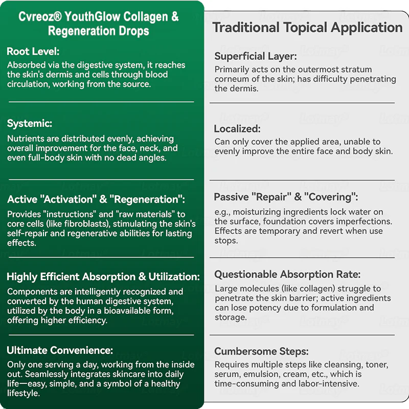 ✅ Rapid absorption: This fast-acting liquid formula can directly deliver the core ingredient Stem cell to the cells, with a mild but significant effect, especially suitable for those with digestive system sensitivity.