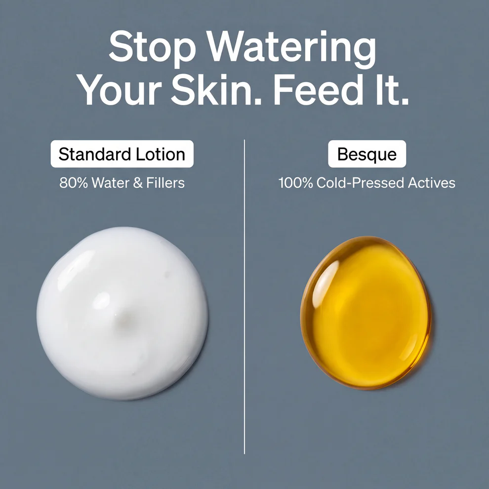 We replaced “filler” with “function.” Our formula uses a synergistic blend of 7 unrefined oils to target the three layers of dermal degradation.