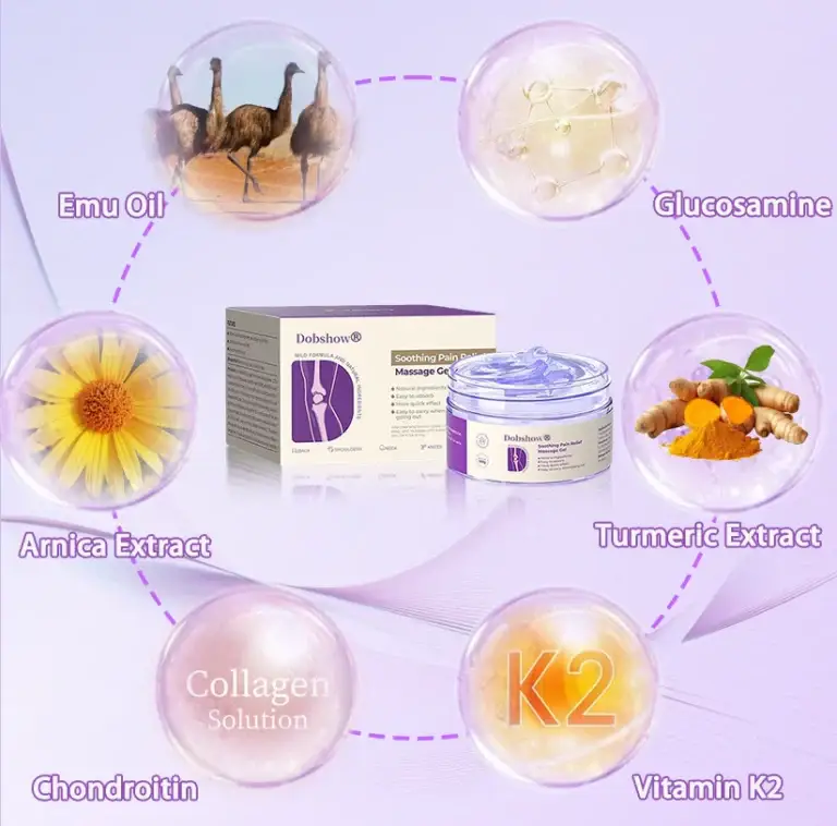 Dobshow® Joint Pain Treatment Gel – Turmeric Extract & Emu Oil is a scientifically-backed solution designed to address joint pain effectively. It provides rapid pain relief in just 3 minutes, improves joint mobility within 3 days, and promotes full recovery from arthritis in as little as 7 days. Powered by natural anti-inflammatory ingredients like organic turmeric and pure emu oil, the gel deeply penetrates the skin to reduce inflammation, nourish joints, and support long-term healing. Clinically proven and easy to apply, Dobshow® is the ultimate choice for those seeking quick relief and lasting results from arthritis and joint discomfort.