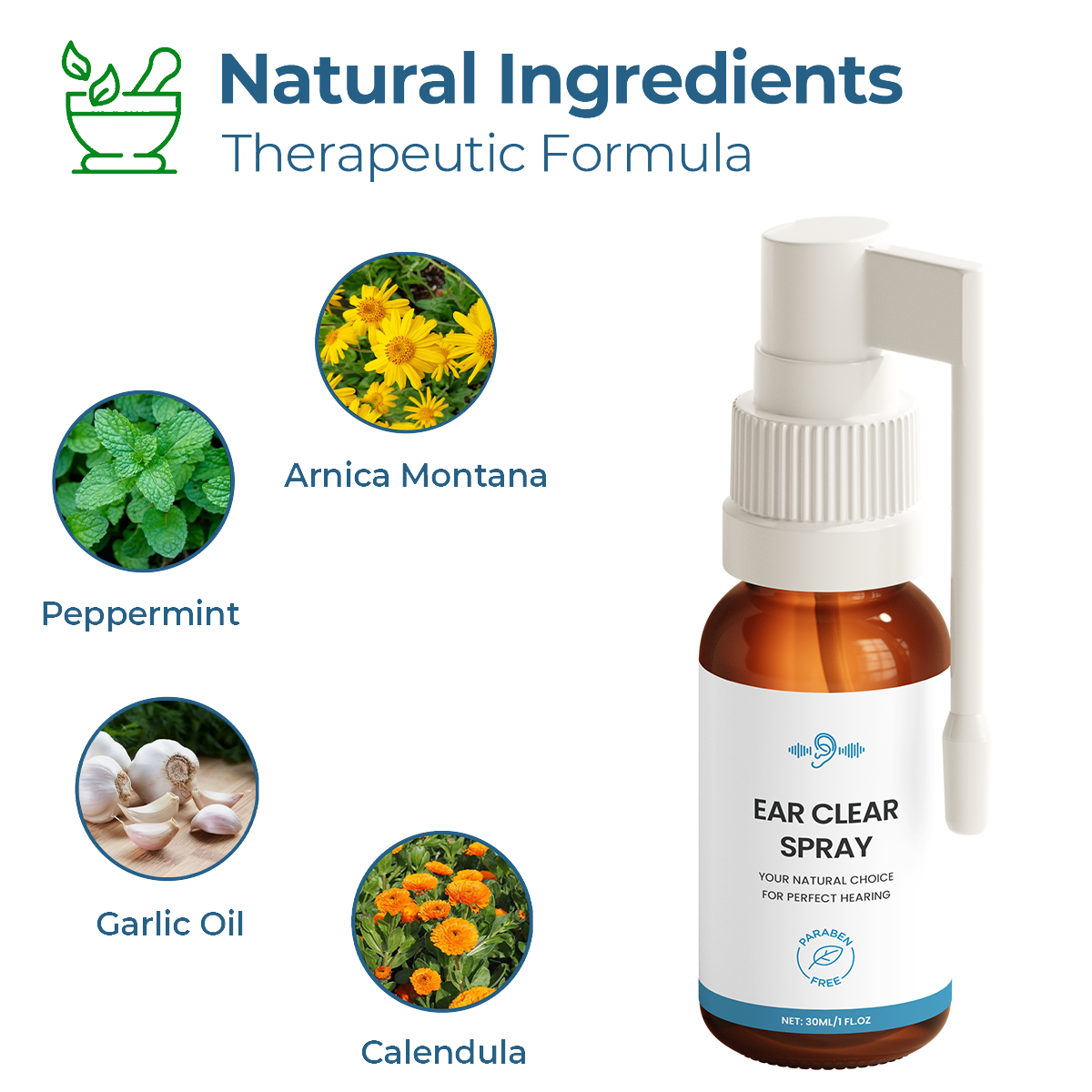 EarClear™ using a potent mix of natural and medical-grade extracts to clear the ear canal, reduce pain, silence tinnitus, and calm inflammation.