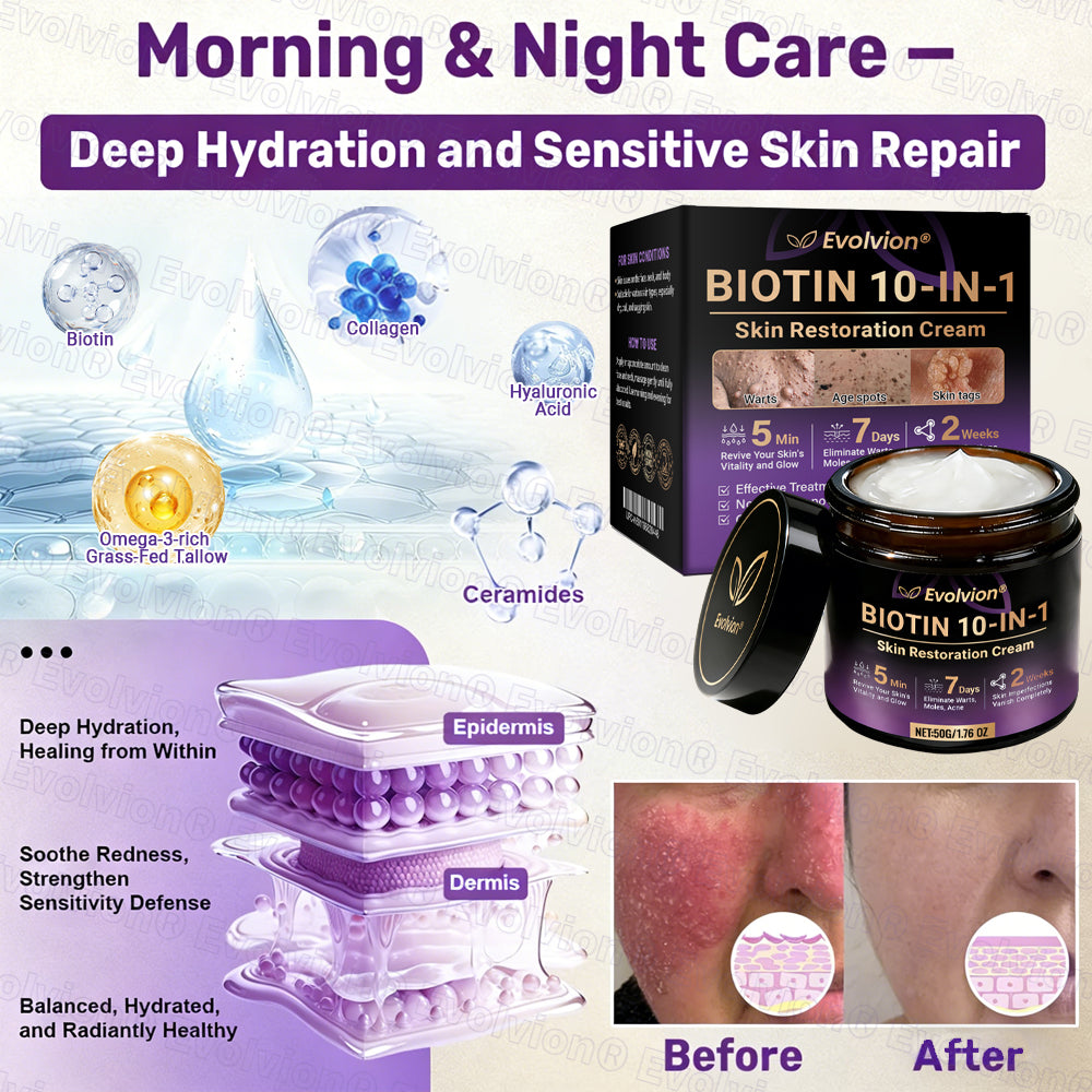 The skin problems that have troubled you for half a lifetime — Evolvion® Biotin 10-in-1 Skin Restoration Cream finally brings the answer!