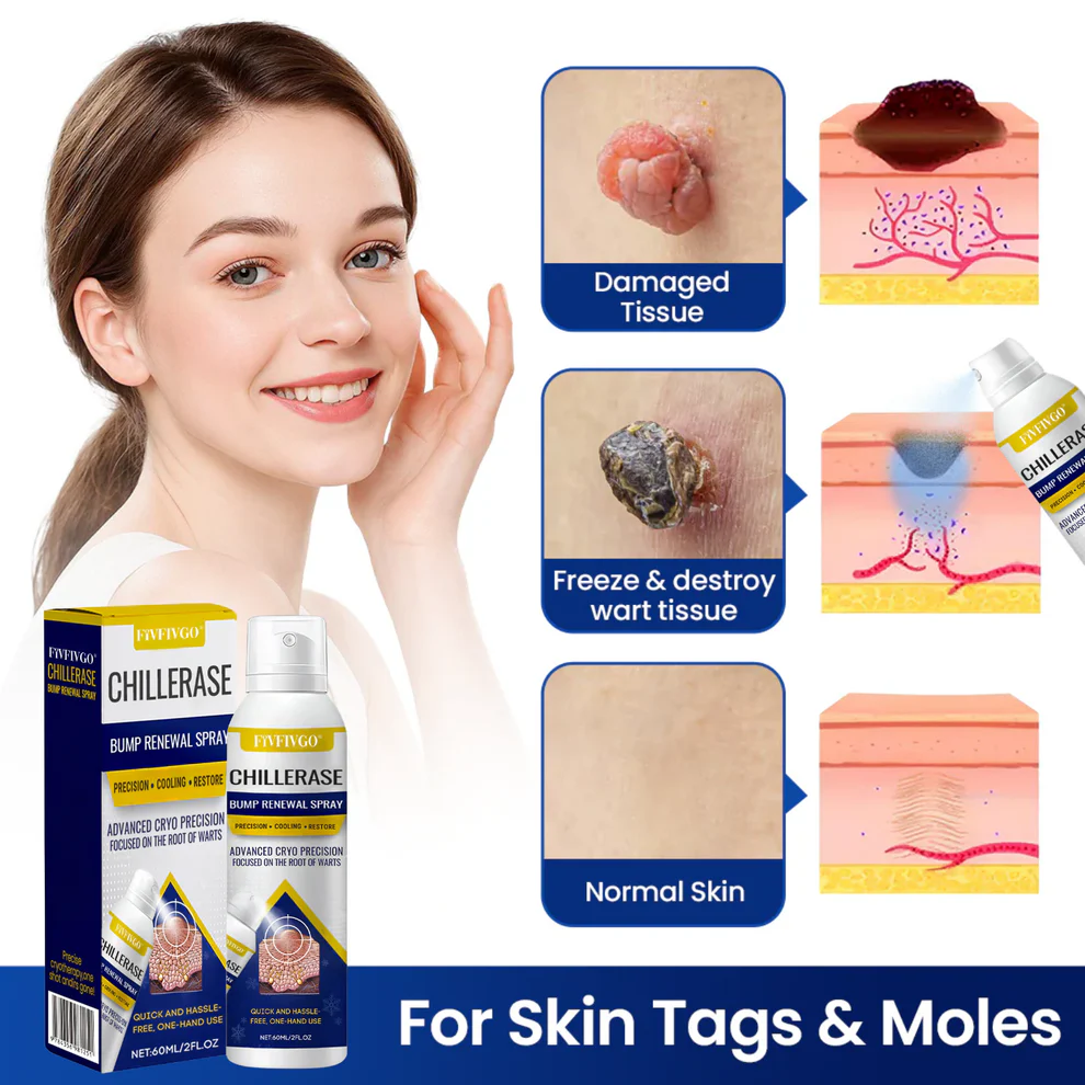 Fivfivgo® ChillErase Bump Renewal Spray uses advanced Cryo-Cooling Renewal Technology to safely smooth and refine the skin — without irritation or downtime. Once applied, the cooling mist instantly lowers surface temperature, calming redness, tightening pores, and gently loosening hardened buildup beneath the skin.