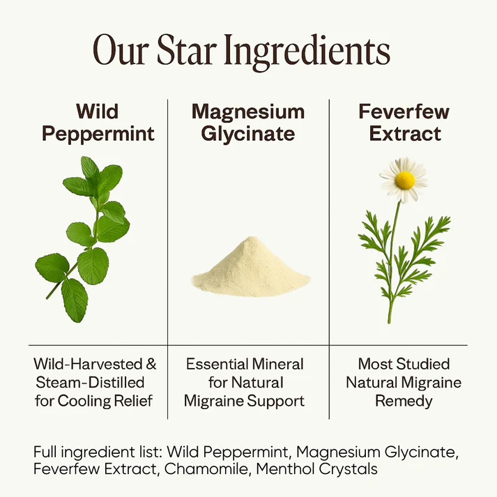Wild-harvested for an immediate cooling sensation that interrupts your migraine spiral.