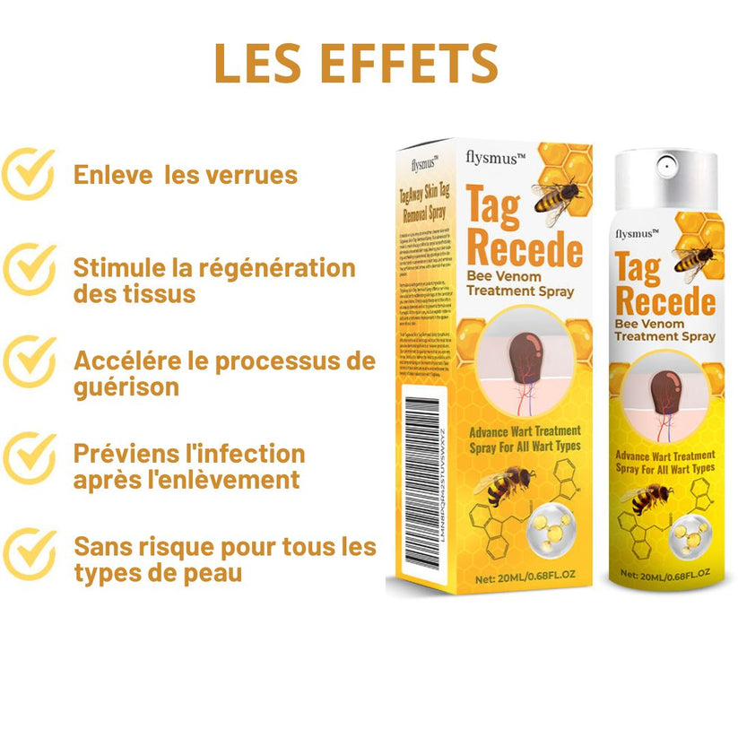 TagRecede Flysmus™ Bee Venom Spray safely removes skin tags and warts, stimulates tissue regeneration, accelerates healing, and provides long-term protection for smooth skin.