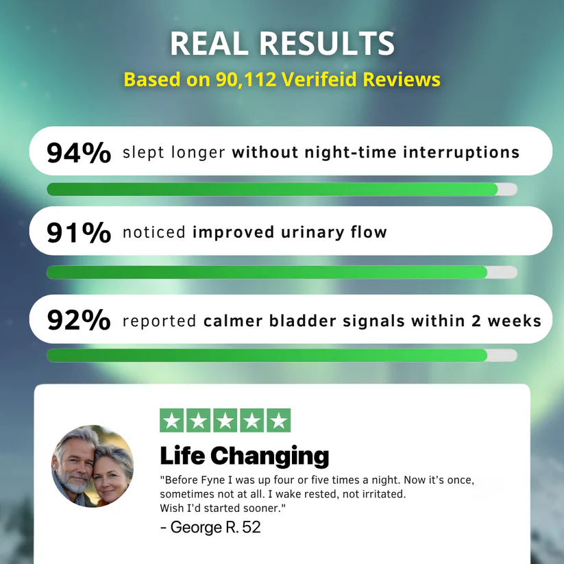 Support urinary wellness with Fyne Arctic Bladder Control, a natural supplement designed to help reduce the frequency of nighttime bathroom trips for men