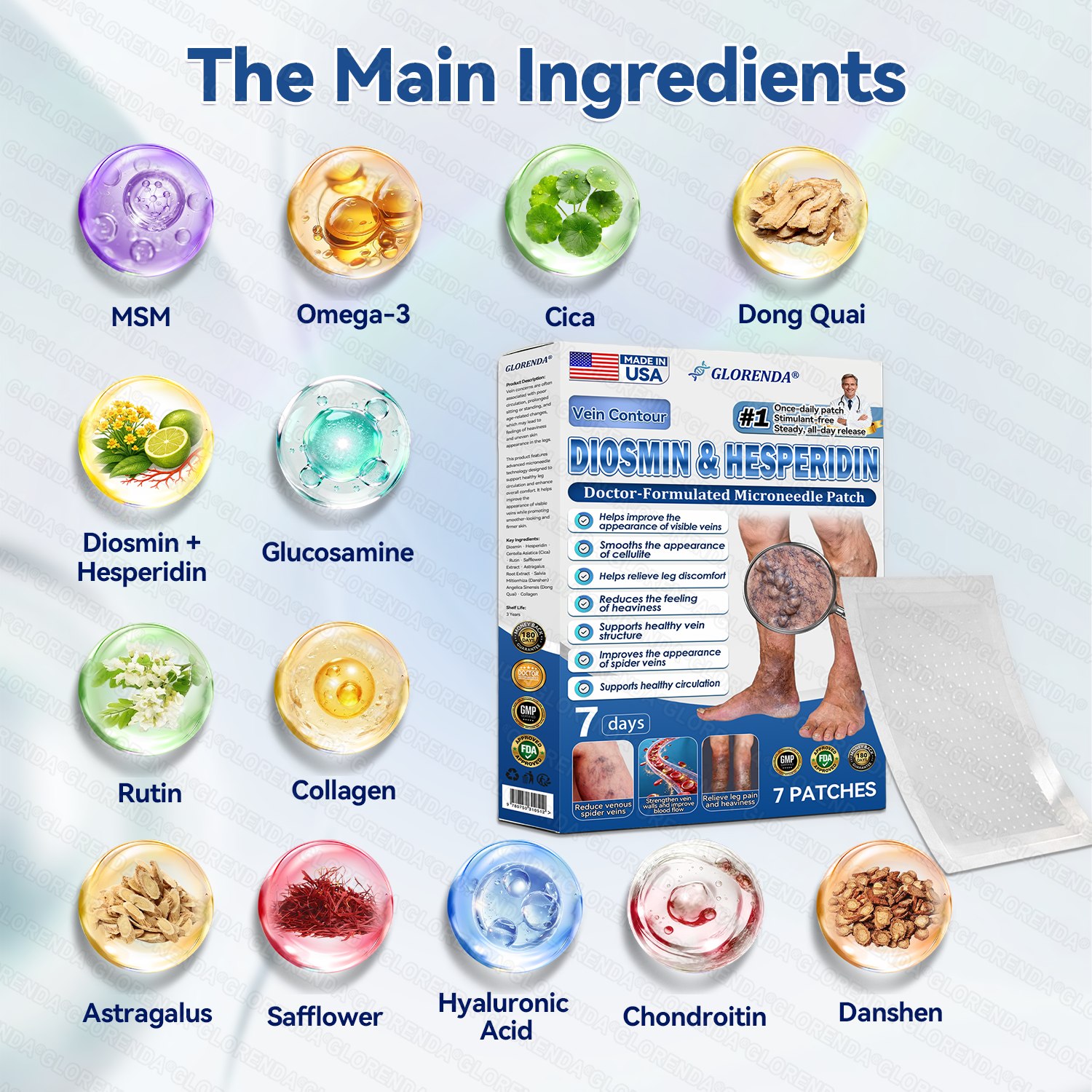 Featuring an advanced microneedle transdermal delivery system, the patch helps key active ingredients penetrate more efficiently, reaching the skin and circulatory areas of the legs to help improve leg heaviness, Joint pain, poor circulation, and visible protruding veins.