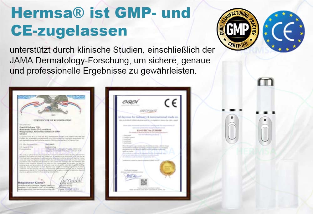 Hermsa® is supported by multicenter clinical trials, including a long-term CO₂ laser safety study published in JAMA Dermatology, and meets stringent FDA and CE safety standards. With its clinically proven efficacy, it offers a professional, non-invasive alternative to expensive dermatological procedures – conveniently from the comfort of your own home.