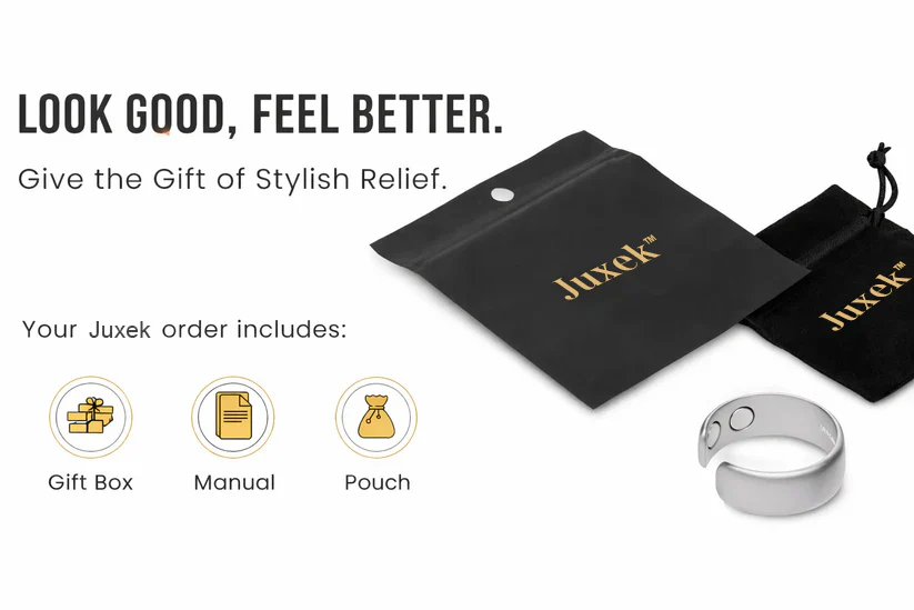 The Juxek™ Magnetic Ring uses natural magnetic therapy and acupressure—not sensors or apps—to support your body’s own systems. Worn comfortably on your finger, it helps promote better circulation, reduce tension, and calm the nervous system. No syncing. No batteries. Just a sleek wellness tool designed to help you feel more balanced, rested, and energized day and night.