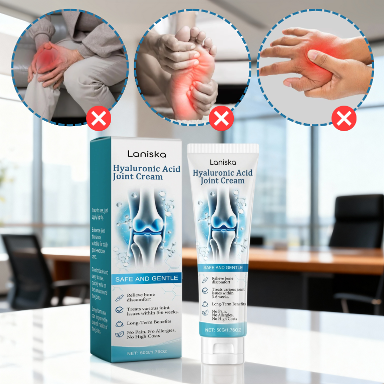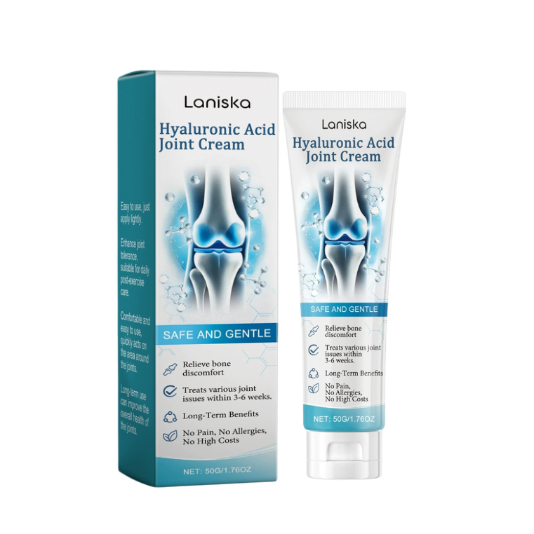 Laniska Hyaluronic Acid Joint Cream helps relieve joint discomfort and support mobility with hyaluronic acid and natural extracts, no pills or injections
