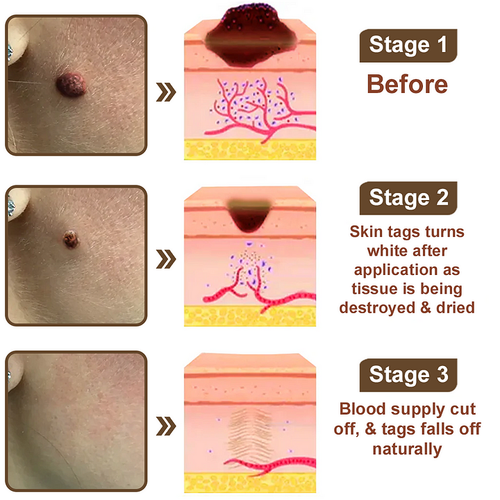 KeraErase uses a non-acidic botanical formula that gradually softens raised tissue and dissolves the keratin buildup beneath the bump.This allows the skin tag or wart to flatten naturally without burning, peeling, or irritation.