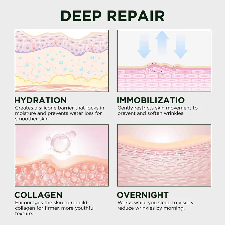 ✅ Medical-Grade Silicone: Creates a breathable barrier that holds in moisture and collagen while physically supporting the skin overnight.