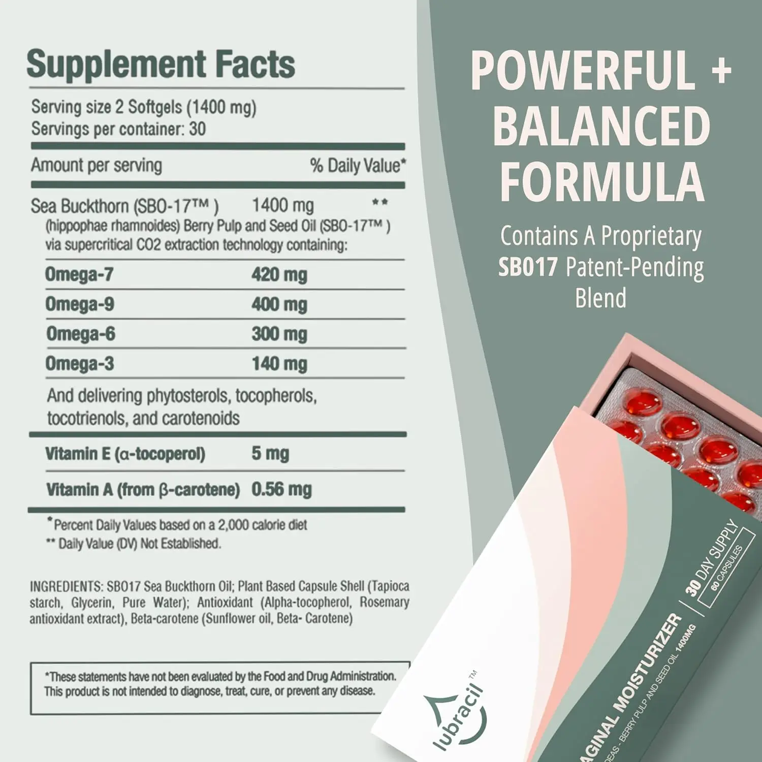 SBO-17® is a proprietary extract of sea buckthorn oil, rich in Omega-7 and essential fatty acids. This clinically studied ingredient helps restore natural vaginal moisture, improve elasticity, and support overall intimate health by deeply nourishing the mucous membranes from within.