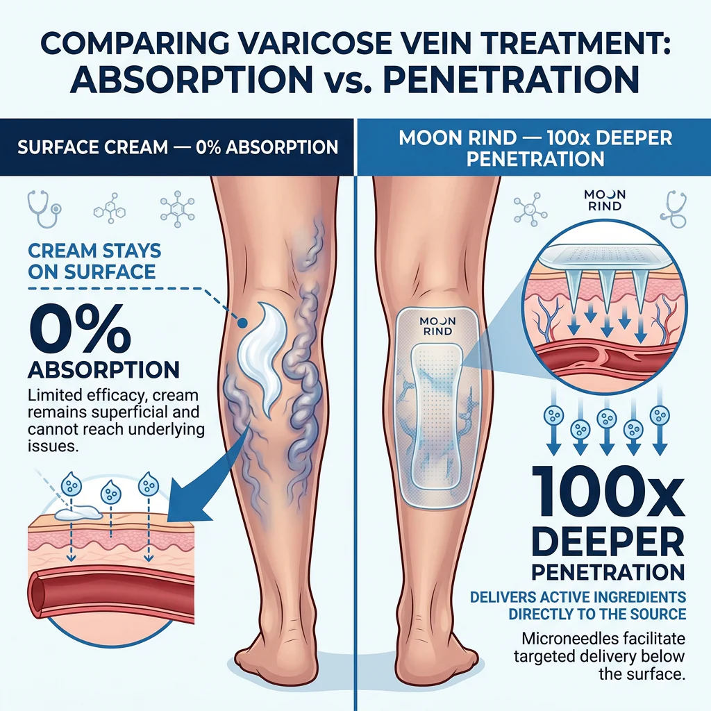 Moon Rind® VeinTarget Microneedle Patch helps reduce the appearance of spider veins and blue lines with botanical microdarts that deliver nutrients deep into tissue