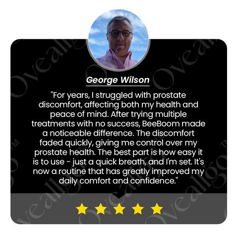 “Honestly, I was initially skeptical about whether a nasal inhaler could truly benefit my prostate health. I’ve always approached new health products with caution, especially something as unique as bee venom. However, after using BeeBoom for just a few weeks, I was pleasantly surprised by the results. I noticed an improvement in urinary flow and a reduction in discomfort. It’s easy to use and fits seamlessly into my busy lifestyle. What I value most is that it’s a natural alternative. I feel reassured knowing I’m taking care of my health without resorting to harsh chemicals or medications.” – Silas K., 49