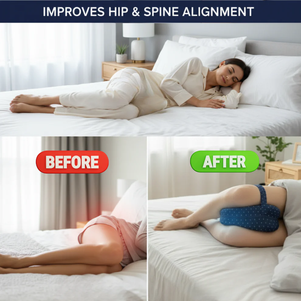The Nourial pillow keeps your legs properly spaced so your hips and lower back finally relax instead of fighting pressure all night.
