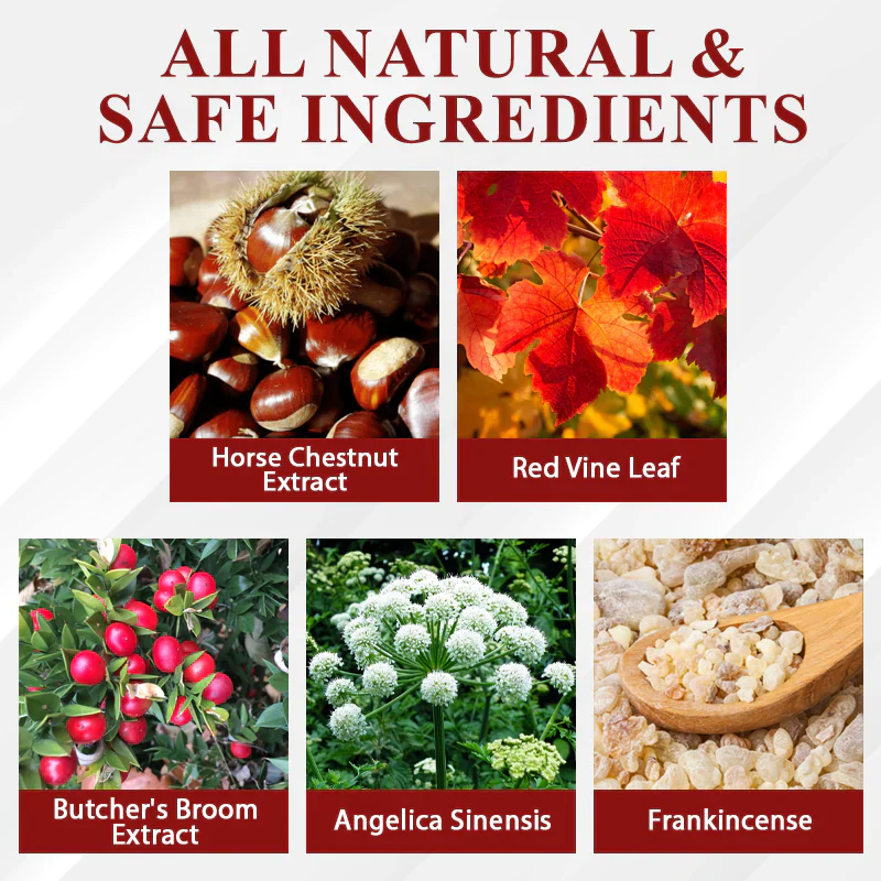 - Horse Chestnut Extract – Helps strengthen vein walls and reduce fluid leakage, easing leg heaviness and swelling.