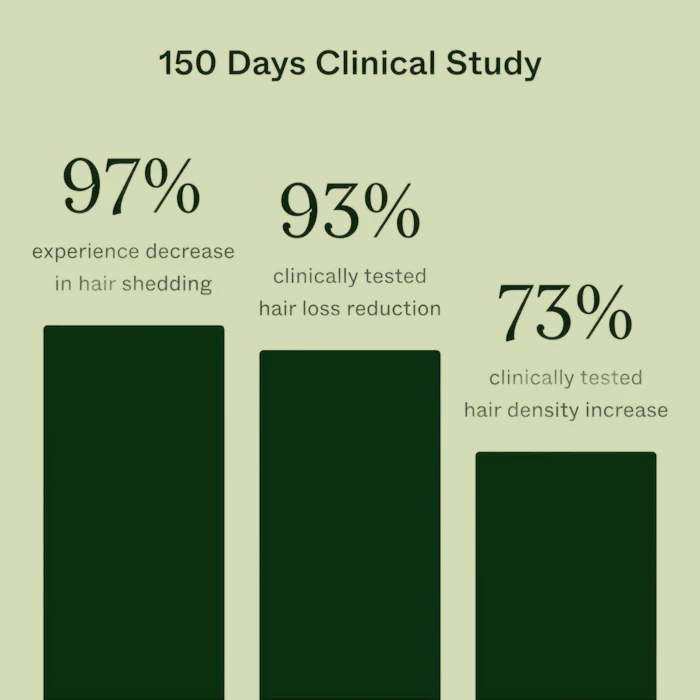 In the first week, the scalp feels cleaner and lighter, roots feel less weighed down and early signs of reduced shower shedding begin to appear. By week two, improved scalp circulation starts to support follicle activity. Around week four, follicles begin transitioning back toward their active growth phase. By week eight and beyond, visible baby hairs emerge along the hairline and part, and overall volume and density continue to improve with each wash.