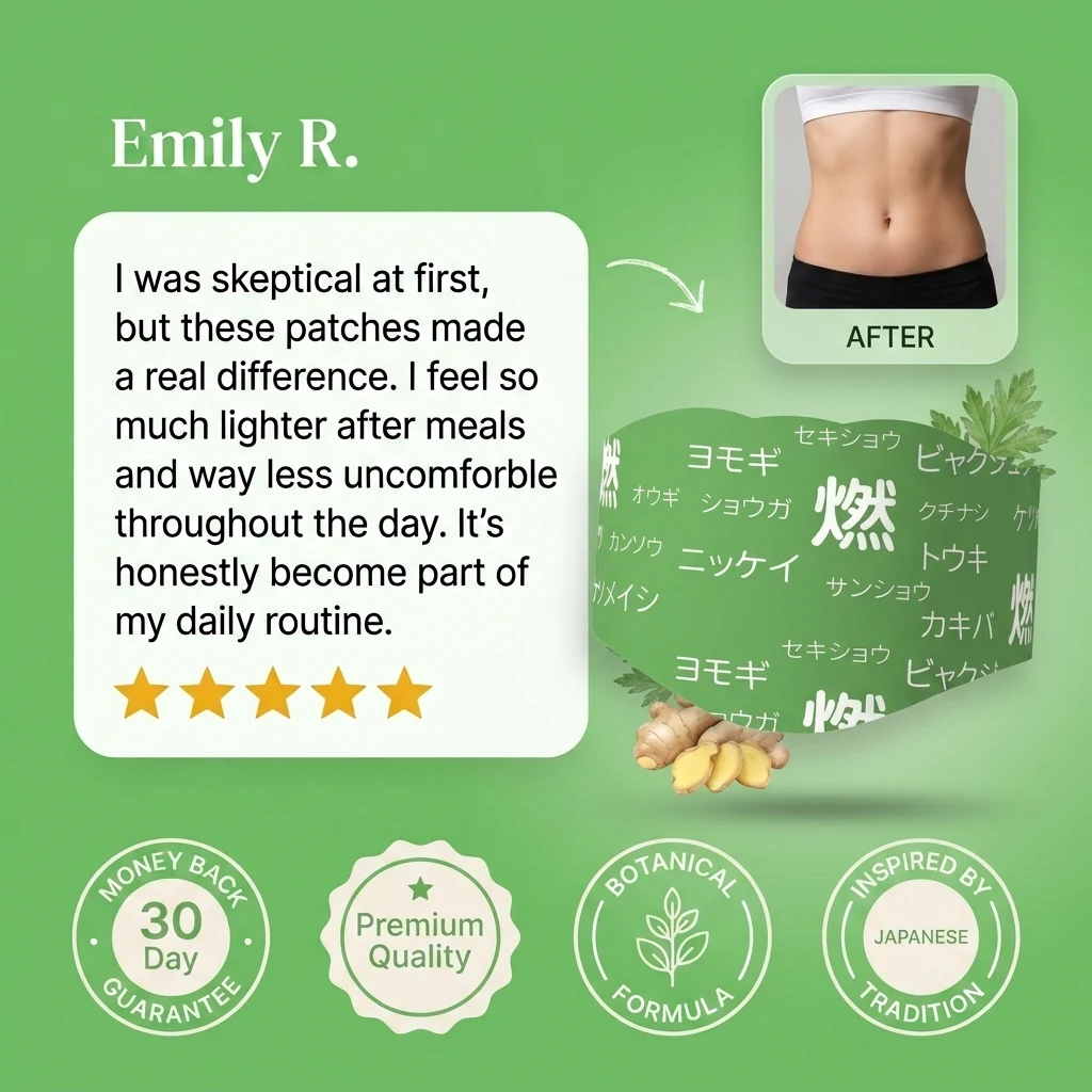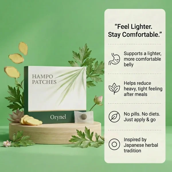 Support abdominal comfort with Orynel Japanese Hanpo Patches, a pill-free warming botanical blend designed to help reduce the appearance of daily bloating