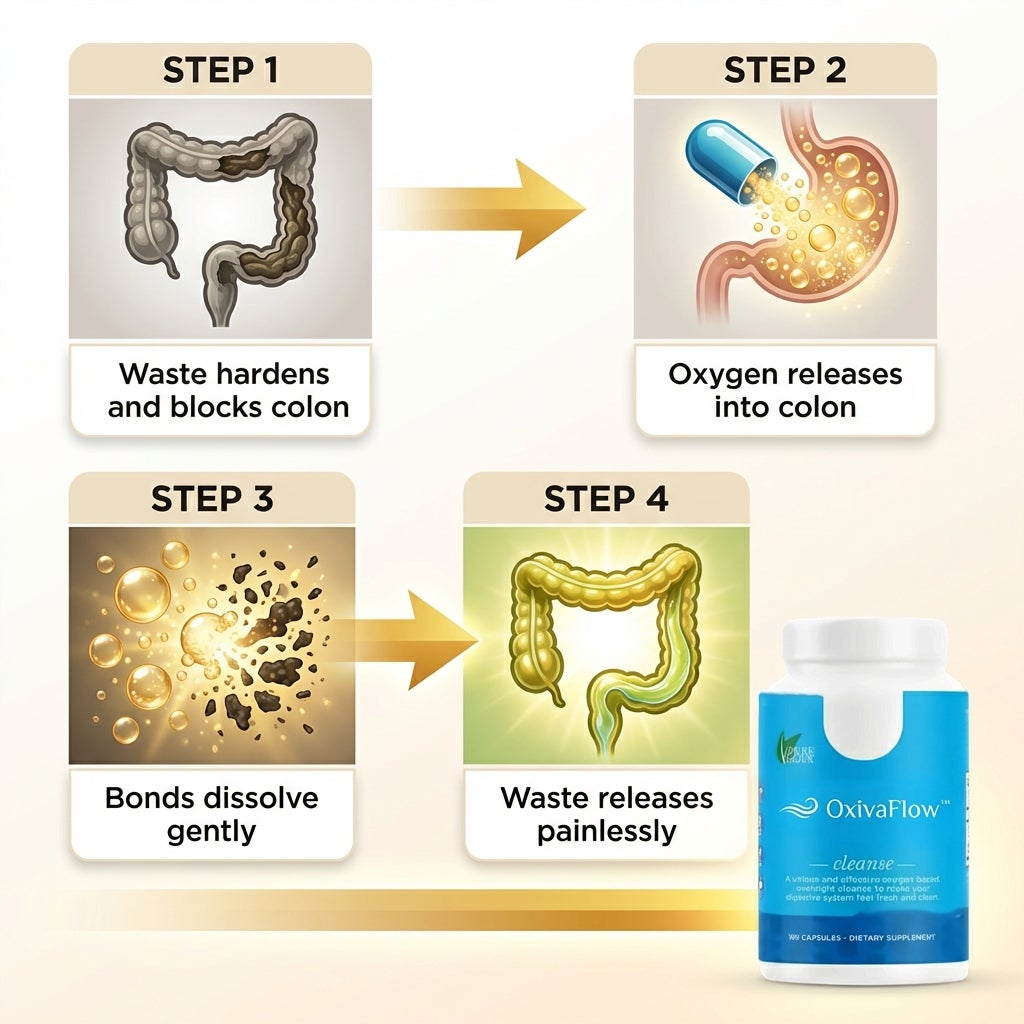 OxivaFlow™ contains magnesium oxide (1,035mg) and citric acid — the combination that releases oxygen directly into your colon to dissolve hardened waste in as little as 24 hours.