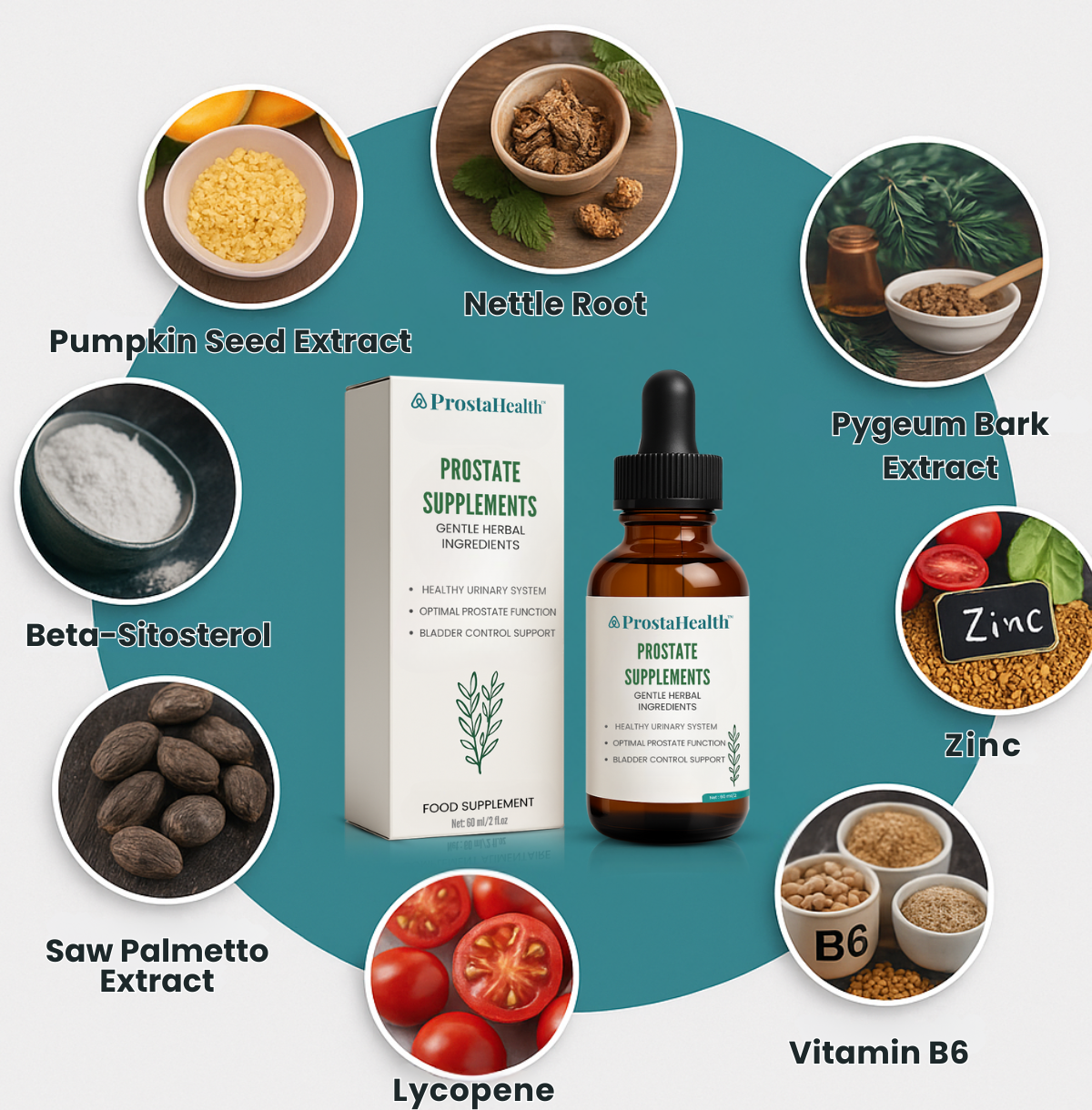 ProstaHealth Gentle Herbal Prostate Supplement supports healthy urine flow and helps reduce the appearance of frequent nighttime bathroom trips for men