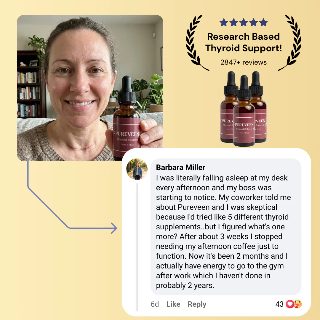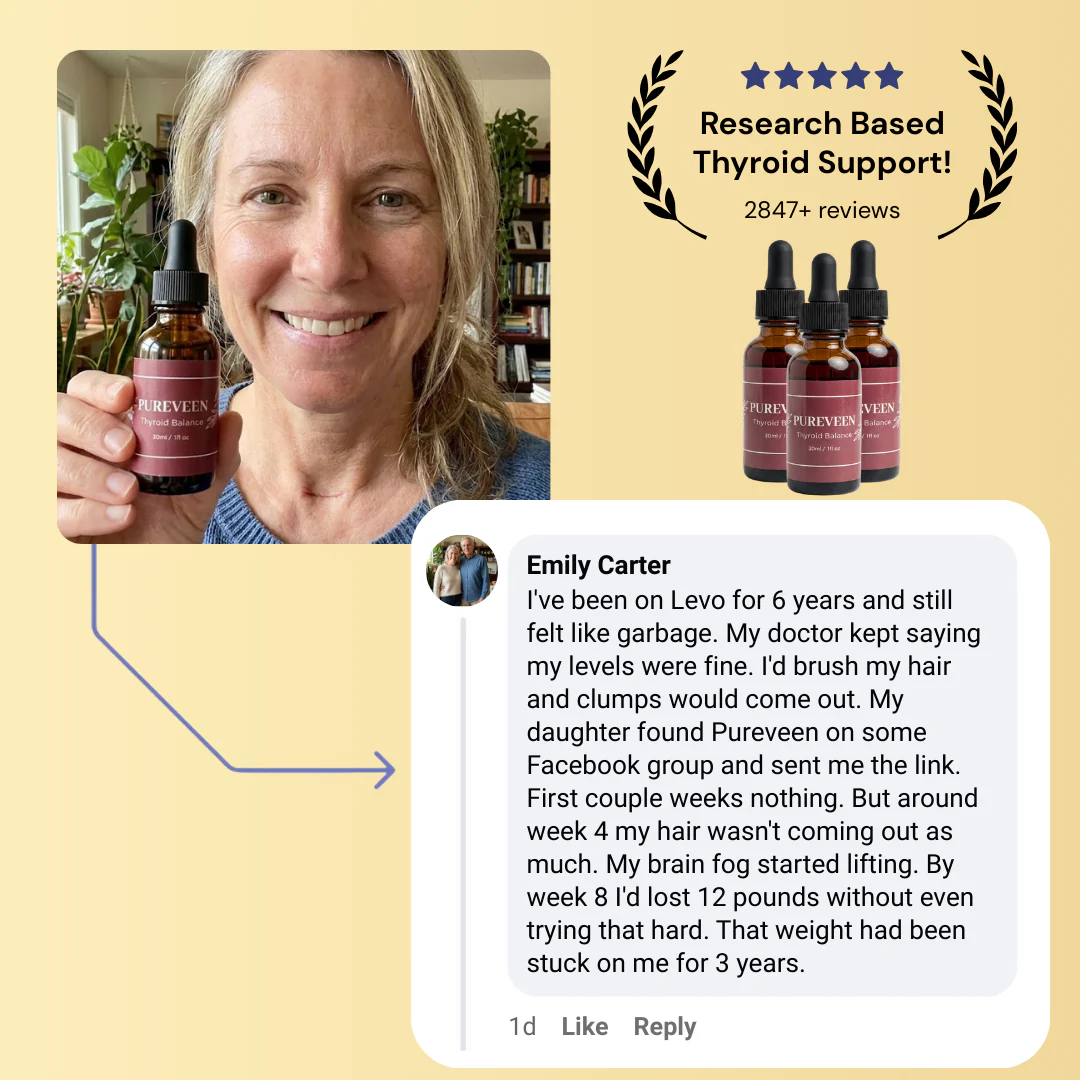 Pureveen works alongside levothyroxine, Synthroid, Armour, Tirosint, and other thyroid medications. It’s not replacing your medication — it’s supporting your body’s ability to actually use the hormone.