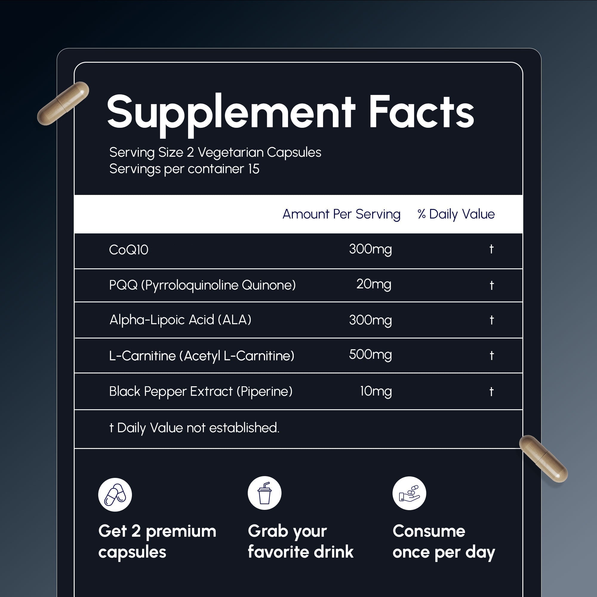 CoQ10 (Coenzyme Q10) is a natural compound found in every cell of your body. It’s most concentrated in organs that demand a lot of energy — like the heart, brain, and reproductive system.