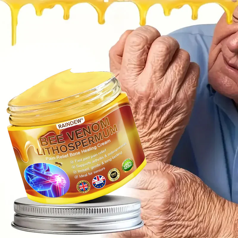 RAINDEW® BEE VENOM LITHOSPERMUM Pain-Relief Bone Healing Cream This product is certified and recommended by MHRA, meeting their high standards to effectively relieve pain and promote bone health. Approved by orthopedic doctors, it relieves pain within 5 minutes, restores joint mobility in 7 days, and significantly improves arthritis symptoms in 4 weeks. Choose our BEE VENOM LITHOSPERMUM Pain-Relief Bone Healing Cream and enjoy reliable results and a pleasant experience with confidence.