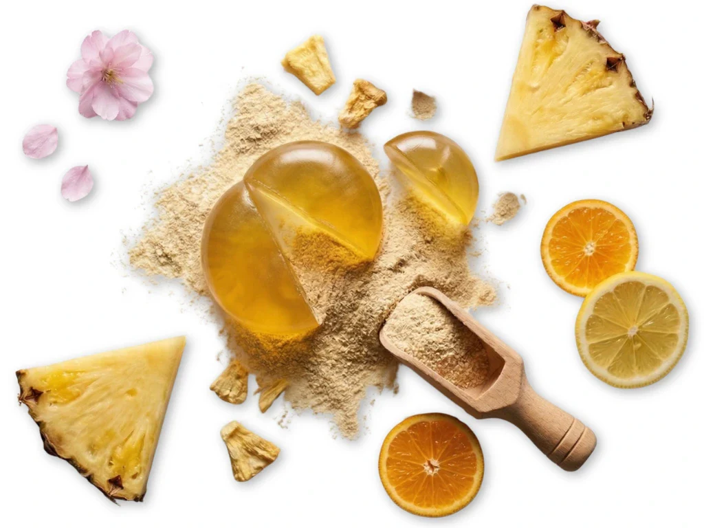 Pineapple Fruit Enzymes: An advanced, naturally derived extract that works continuously to refresh your system. It also serves to gently aid in healthy daily nutrient absorption.
