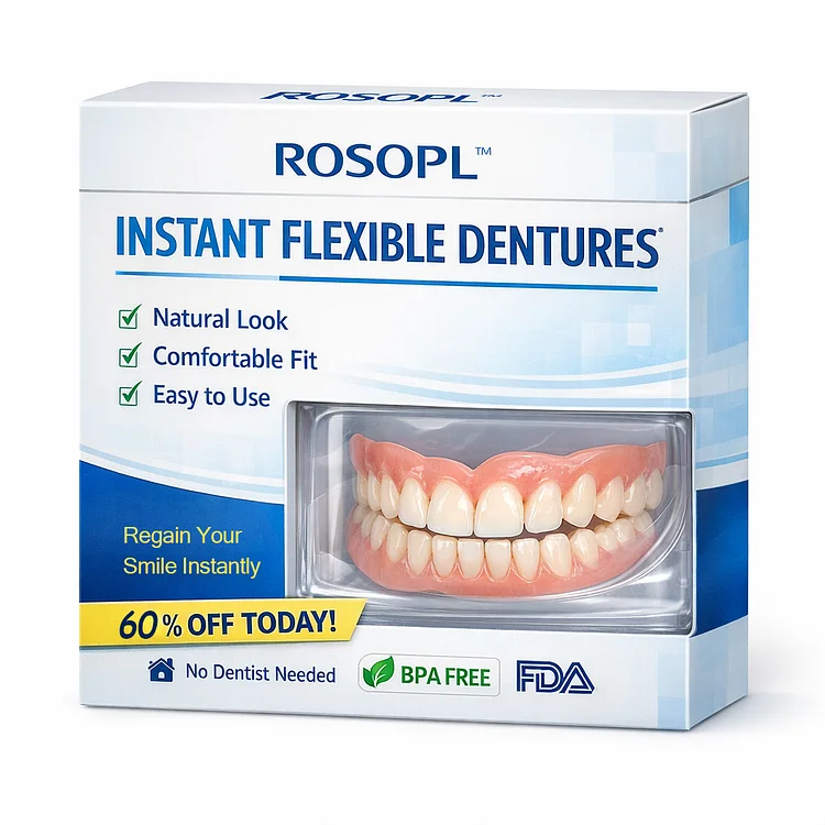 ROSOPL Custom-Fit Full Functional Dentures provide a natural-looking, adhesive-free smile. The 3-minute home fitting creates a secure, personalised gum seal