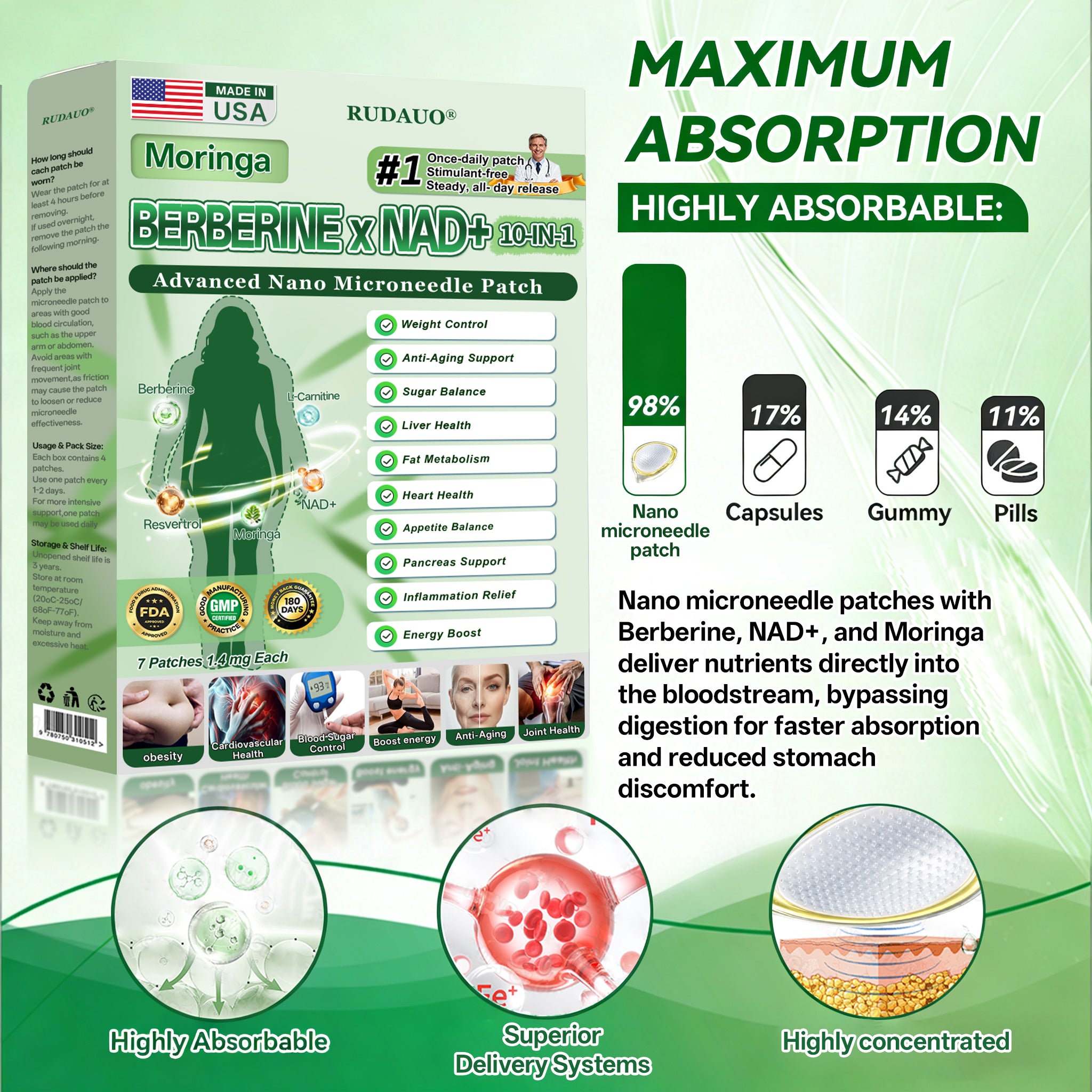 RUDAUO Moringa Berberine NAD+ 10 in 1 Advanced Nano Microneedle Patch