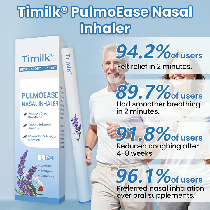 With 99% of people exposed to hazardous air pollution, respiratory support has never been more essential. If you’re a former smoker still struggling with that lingering cough, or tired of costly solutions that promised everything but delivered nothing, you’re not alone.Most people waste hundreds on products that barely work because they rely on the wrong delivery mechanism.But what if there’s a approach that works in 2 minutes instead of 90 minutes?Timilk® PulmoEase Nasal Inhaler uses advanced nasal inhalation technology to deliver concentrated lavender botanical compounds directly to your respiratory system within 2 minutes — bypassing digestion entirely and reaching your lungs where you need it most.