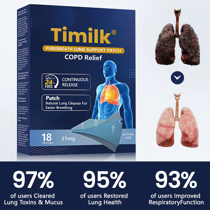“7 weeks have passed, and Timilk® PureBreath Lung Support Patch not only helped alleviate my COPD symptoms but also revitalized my lungs. My doctor confirmed that my lung function has improved far beyond expectations. My coughing, wheezing, and chest pain have completely disappeared, and I no longer need to rely on an inhaler. This recovery process feels like a miracle. I can even take my kids to the park for walks now, no longer worrying about struggling to breathe or feeling exhausted. This product has completely transformed my life, and my family is amazed and thrilled by the speed and effectiveness of my recovery. Now, I wholeheartedly recommend Timilk® PureBreath Lung Support Patch to anyone dealing with COPD or respiratory issues – it truly brought me endless hope and health.”–Max Winters