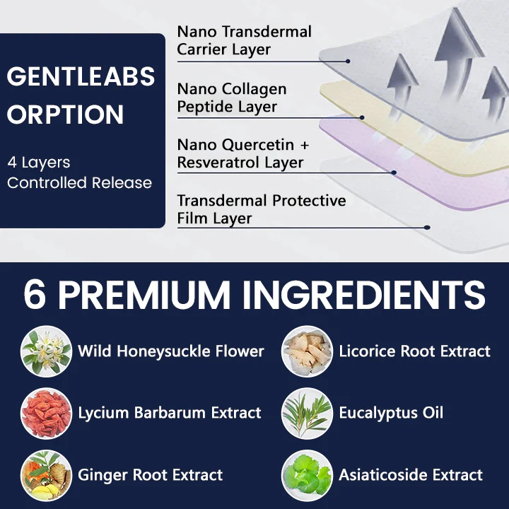 Deep Penetration, Comprehensive Lung Detox:Through the DoubleNano transdermal technology, collagen peptides and quercetin + resveratrol ingredients quickly penetrate the lungs, effectively clearing lung mucus, restoring lung function, and alleviating symptoms like breathing difficulties and coughing.