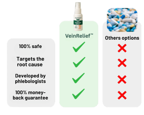 This solution was specifically created for individuals who want relief from painful, unsightly veins but seek a non-invasive, drug-free option. Trusted by doctors and backed by years of scientific research, VeinRelief™ is your go-to remedy for healthier legs.